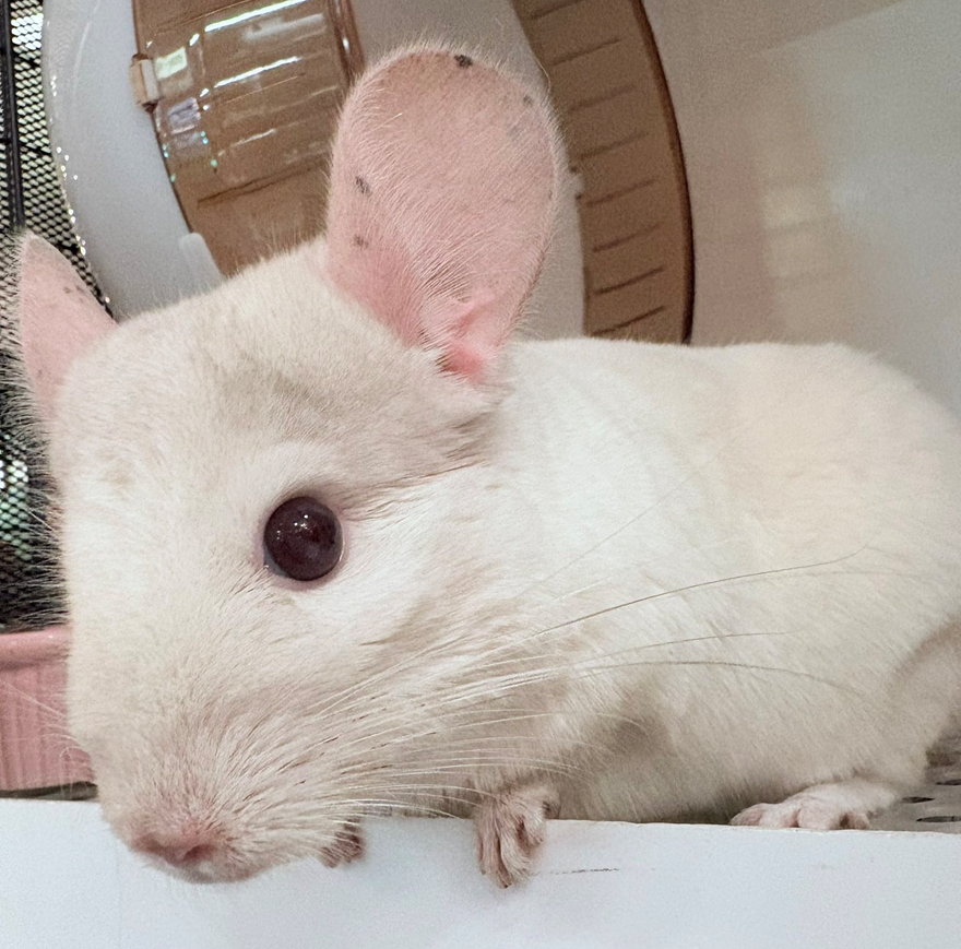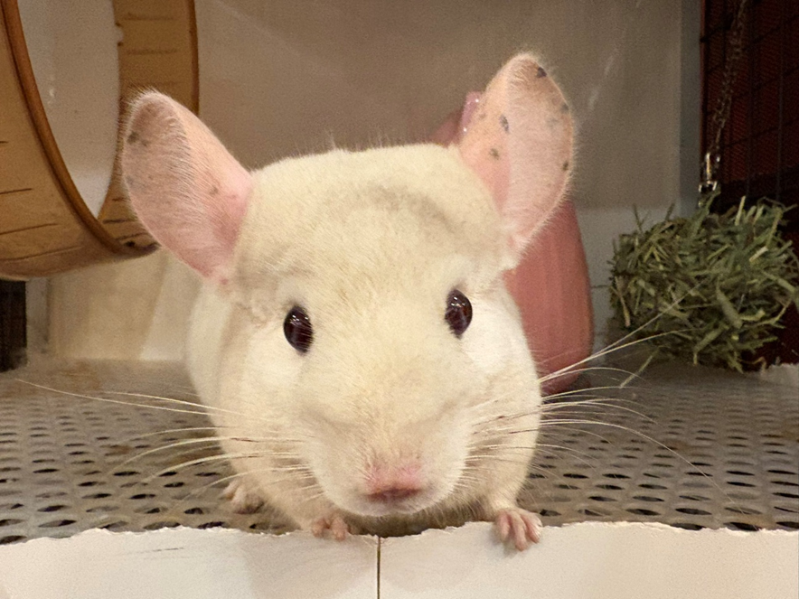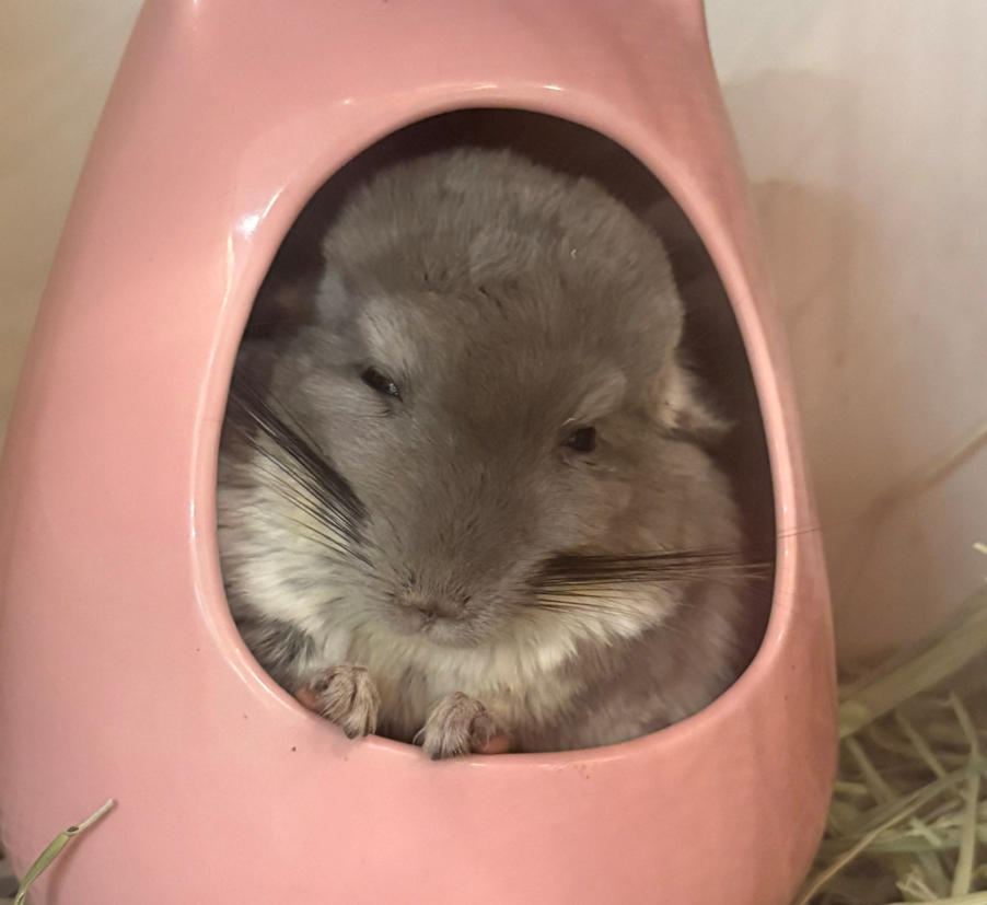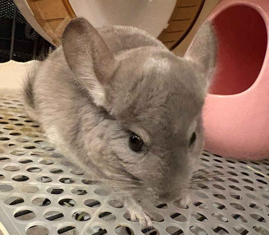 - 主食:牧草、適量のチンチラ用ペレット。おやつには少量の乾燥野菜やドライフルーツ